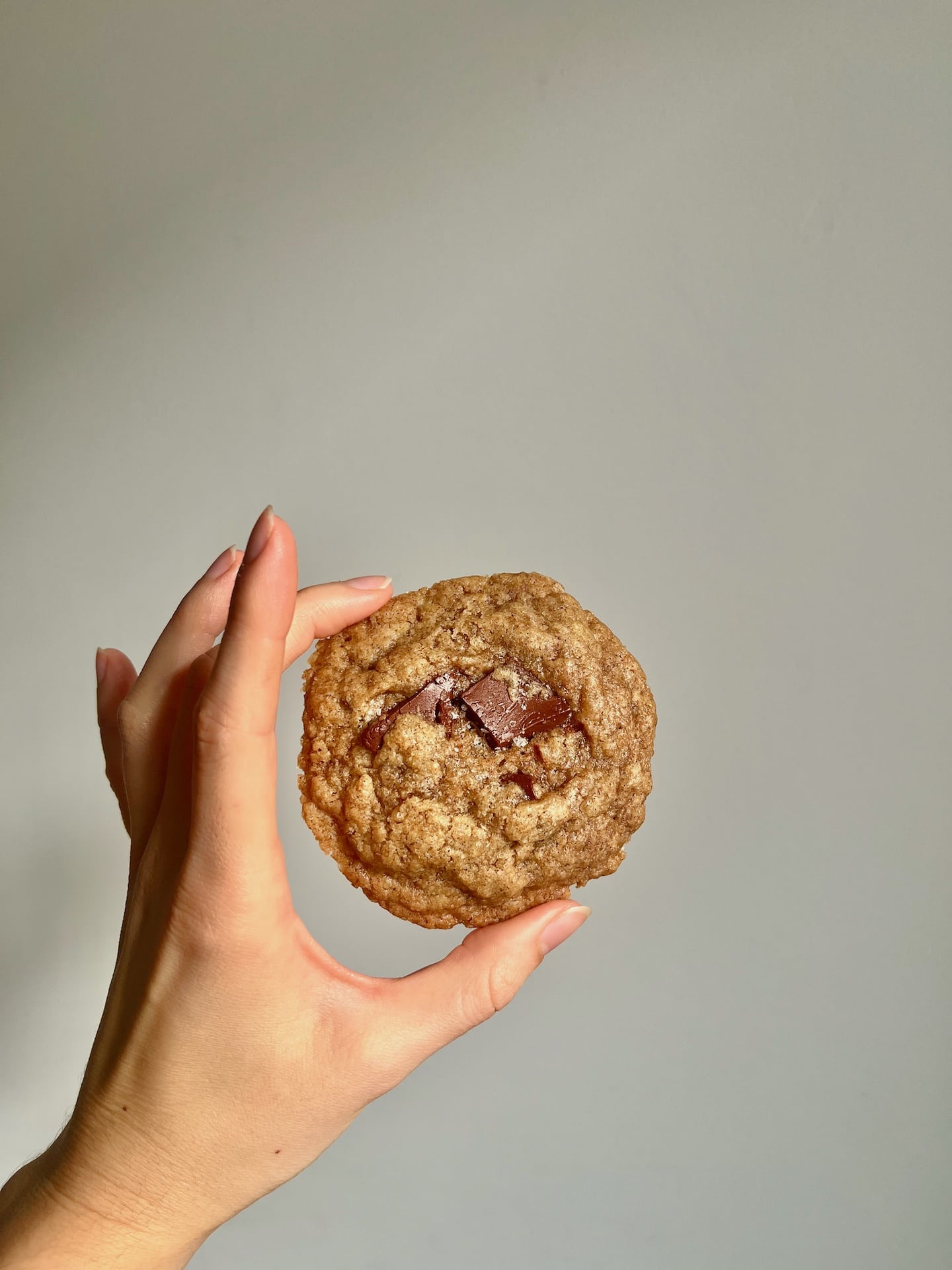 You’ll find plenty of plant-based recipes here at Maverick Baking, from Biscoff brownies to orange loaf cakes. This one specifically was inspired by my vegan chocolate chip cookies from back in Veganuary 2020, and a complete unwillingness to go to the shop to buy butter and eggs.